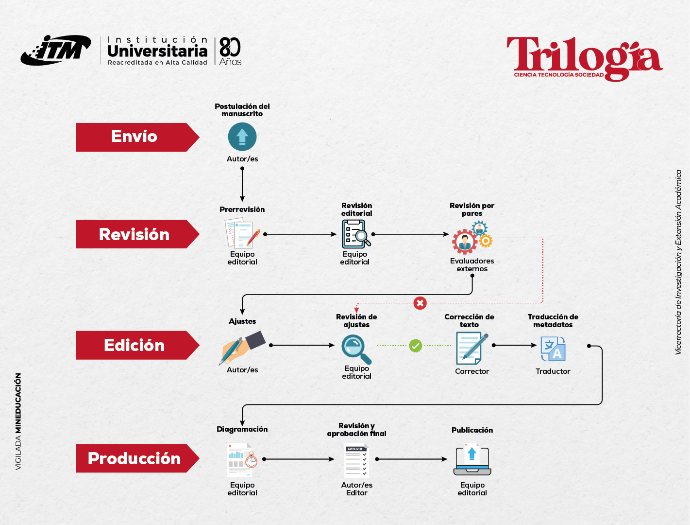 La revista Trilogía Ciencia Tecnología Sociedad emplea un riguroso proceso de revisión para garantizar la transparencia y calidad de sus publicaciones. El cumplimiento de cada una de las etapas detalladas a continuación es fundamental para culminar satisfactoriamente el proceso y aprobar su publicación.